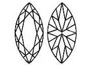 The DIAMOND MARQUISE cut is elongated with pointed ends. It was inspired by the smile of the Marquise de Pompadour and created for France's Louis XIV, who wanted a diamond to match it. The length of the marquise can also make fingers appear longer and more slender. When looking for a marquise shaped diamond, the length to width ratio should be between 1.50 and 2.25 and table and depth percentages between 53 - 60% and 50 - 65% respectively.